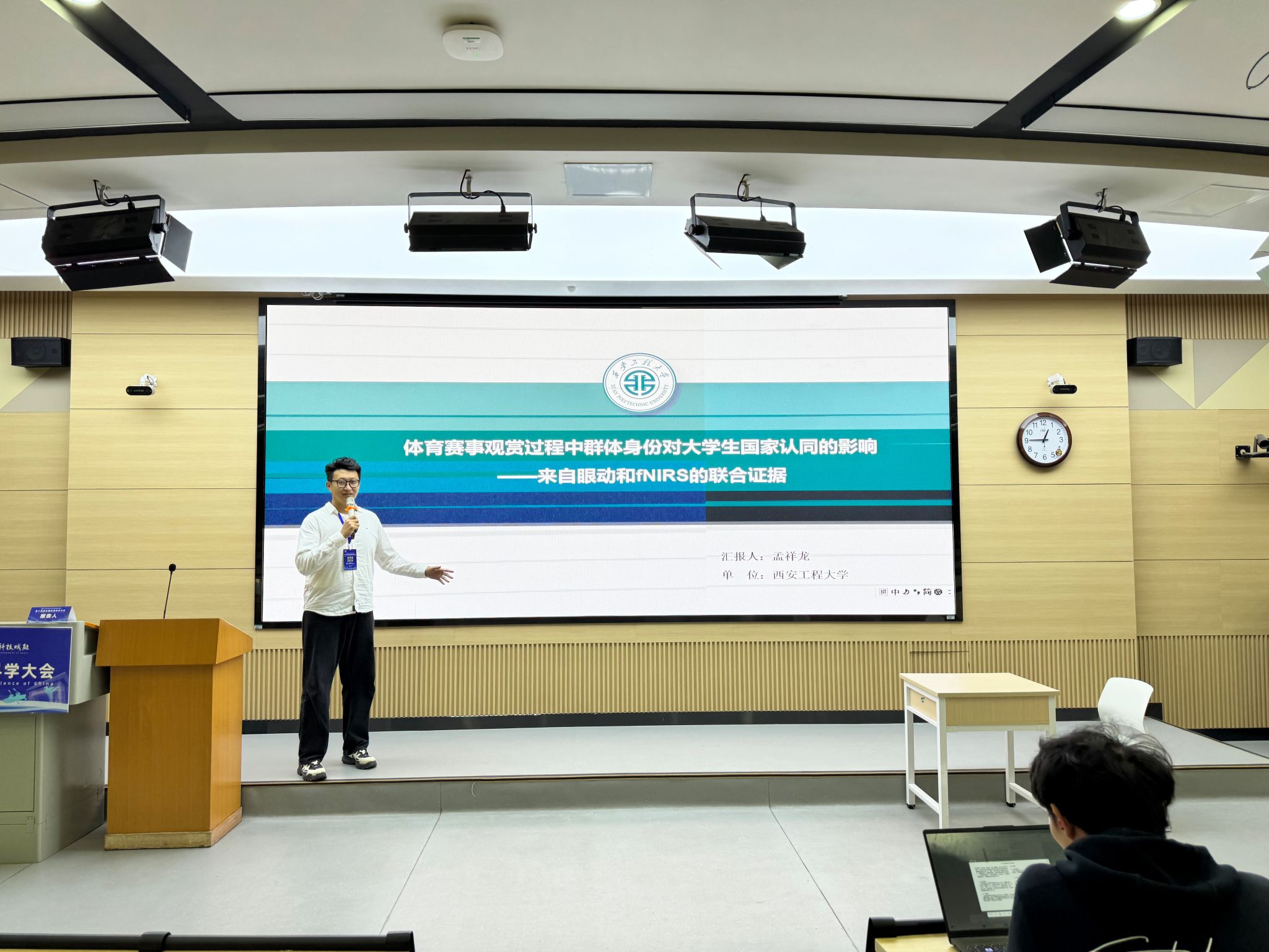此次大会共设立201个专题报告会场,同步开展案例专题报告、热点沙龙、国际交流、墙报交流等活动。刘丽丽以《多目标追踪训练和小场地比赛结合对高校足球运动员运动决策能力的影响研究》、孟祥龙以《体育赛事观赏过程中群体身份对大学生国家认同的影响 ——来自眼动和fNIRS的联合证据》为题,分别做了专题报告。