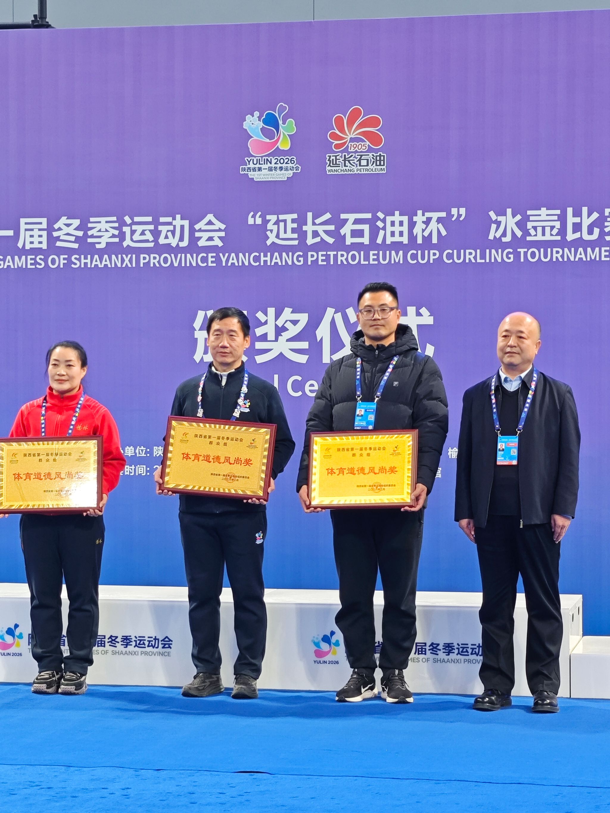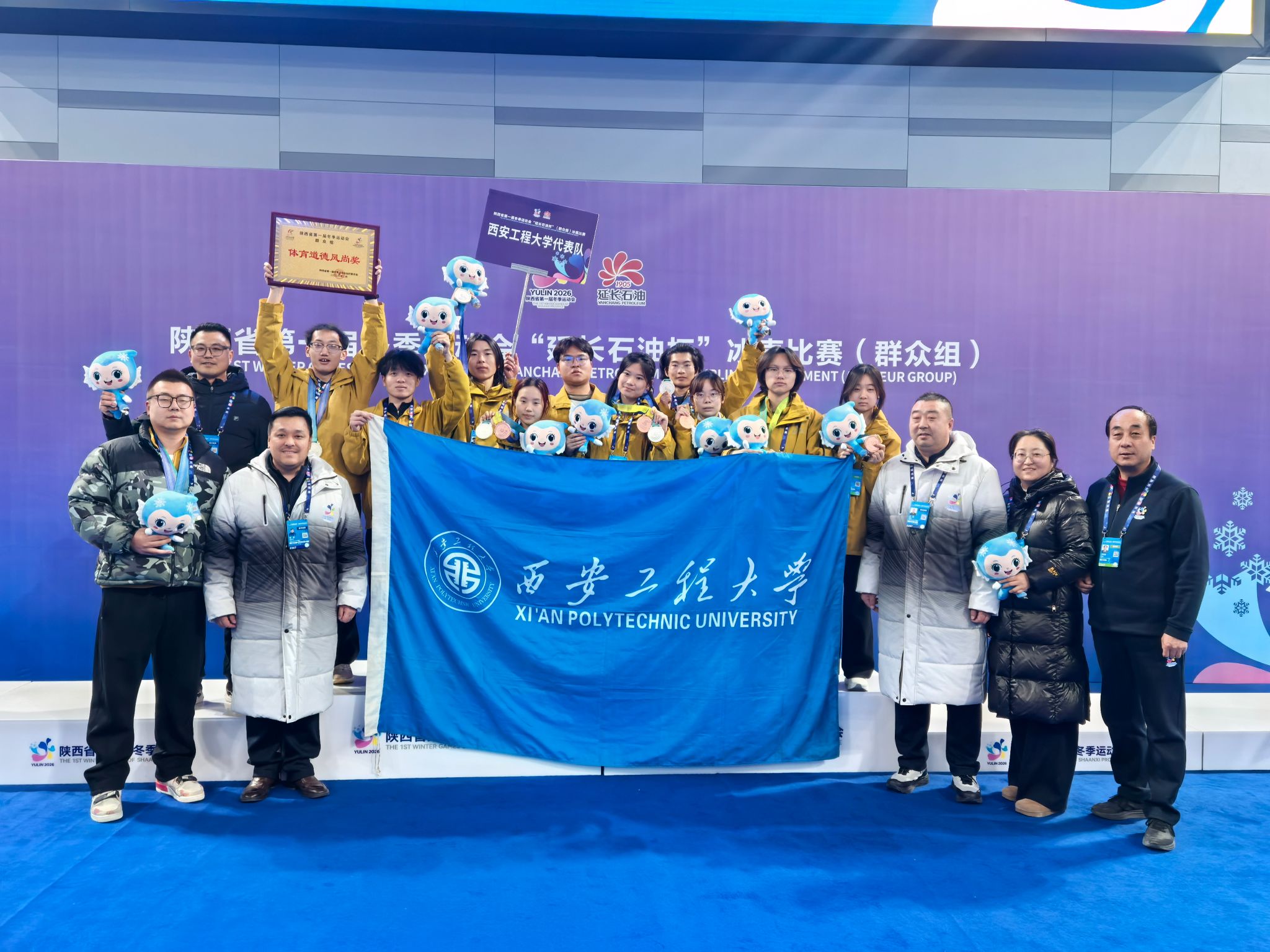 2026年1月27日,由陕西省人民政府主办、陕西省体育局与榆林市人民政府承办的陕西省第一届冬季运动会“延长石油杯”群众冰壶项目,在榆林科创新城滑冰馆圆满落幕。我校派出由李志翔、马保雷、王伟东三位教师组成的教练团队,带领来自机电、服装、环化、理学院、新媒等学院的10名学生,组成我校首支冰壶代表队,参加了成人男、女组的比赛。本次比赛共有来自全省的25支队伍、149名运动员参与。经过五天的激烈角逐,我校男子冰壶队夺得亚军、获颁银牌,女子冰壶队获得季军、摘得铜牌。同时,我校荣获“体育道德风尚奖”。