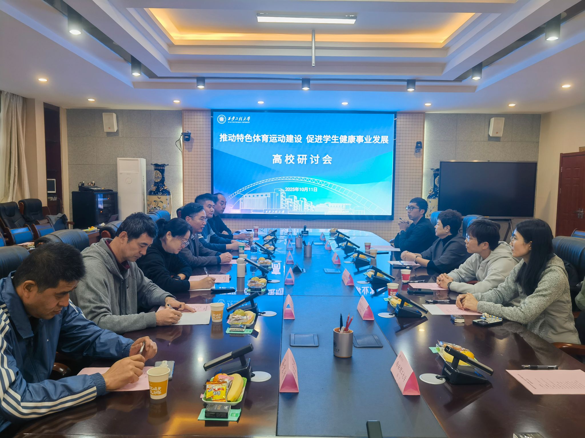 为深入贯彻落实关于全面加强和改进新时代学校体育工作的意见精神,积极探索高校特色体育发展路径,全面提升学生身心健康水平,10月12日,体育部在金花校区第三会议室成功举办“推动特色体育运动建设 促进学生健康事业发展”高校研讨会,本次会议汇聚了来自西安交通大学、陕西师范大学、西安航空学院等多所高校。我校体育部班子成员、教研室主任等参加了会议,会议由体育部副主任刘卢主持。