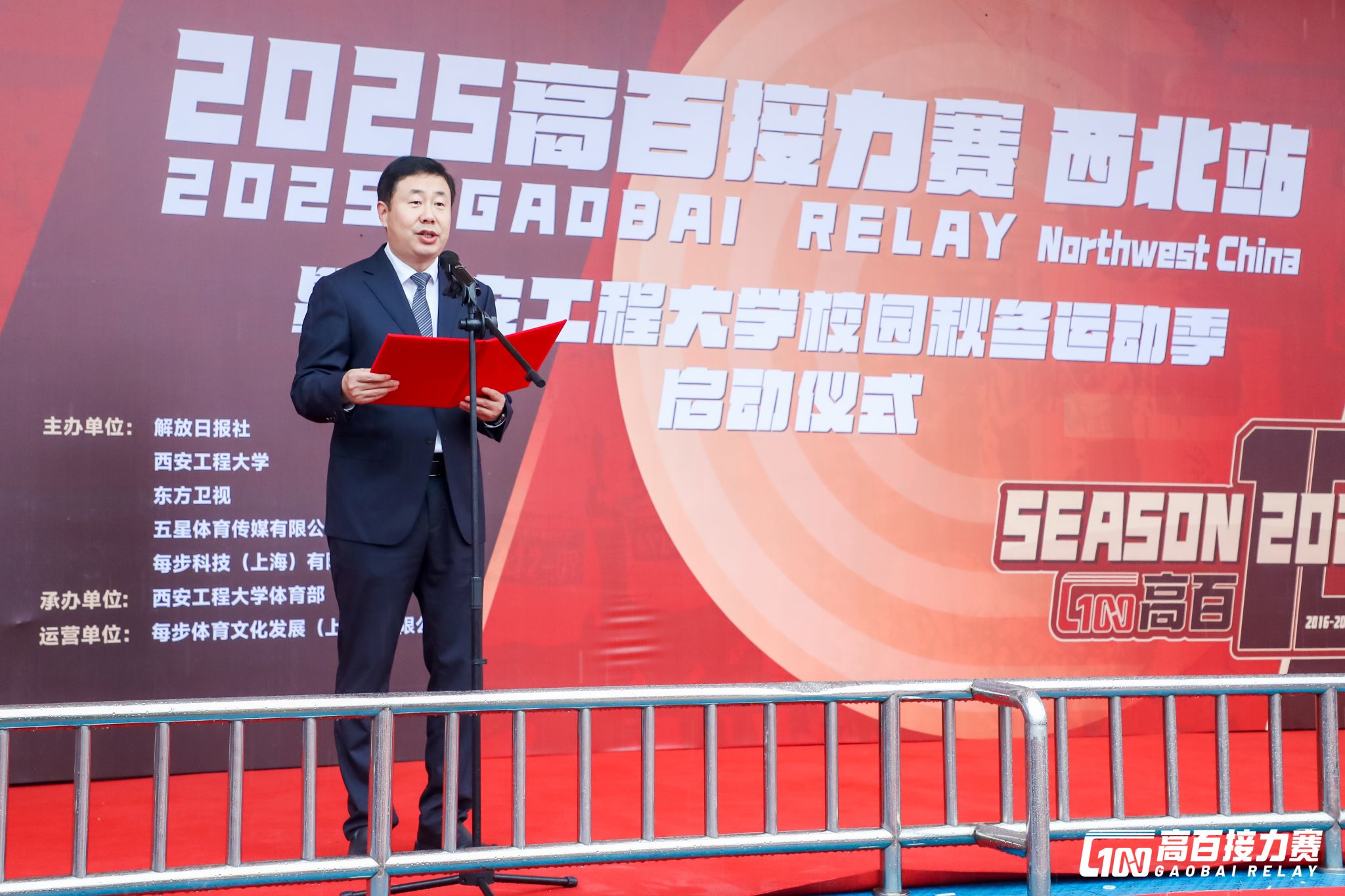 10月12日,我校和解放日报社、东方卫视、五星体育传媒有限公司、每步科技(上海)有限公司联合主办的2025高百接力赛[西北站]暨西安工程大学2025年校园运动季系列活动启动仪式在金花校区隆重举行。