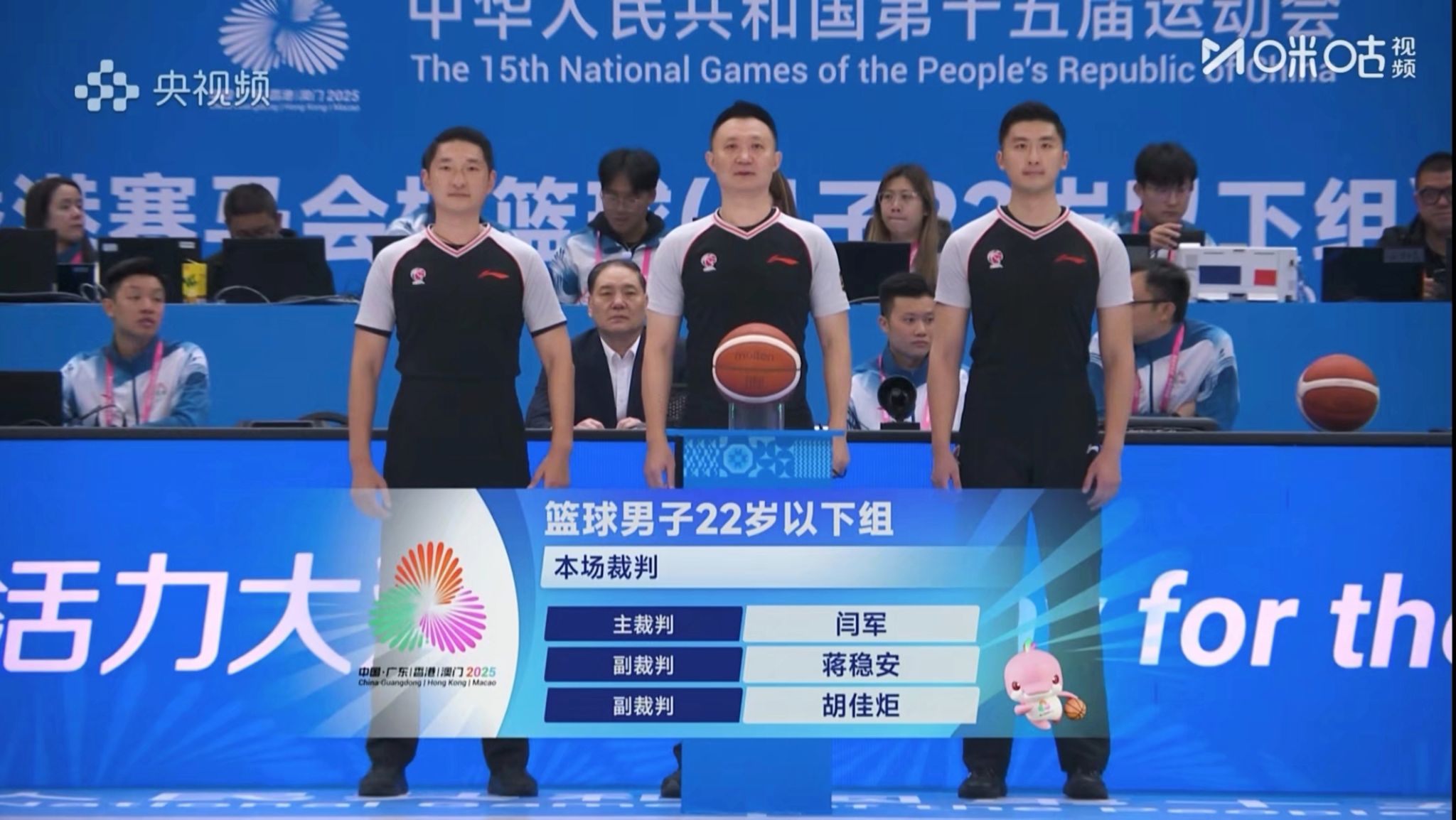 篮球项目男子U22组别赛事在香港红磡体育馆举办,自开赛以来便备受关注。历经小组赛、淘汰赛的层层角逐,山东队与广东队脱颖而出,于11月20日晚在香港红馆展开金牌争夺战。汇聚全国篮球顶尖力量的决赛,不仅是运动员的竞技舞台,更对裁判员的专业能力、临场应变与公平公正素养提出了极高要求。胡佳炬老师经过严格筛选与专业考核,参与此次决赛阶段的执裁工作,这既是对其个人专业能力的高度认可,也是我校体育教育实力的有力彰显。