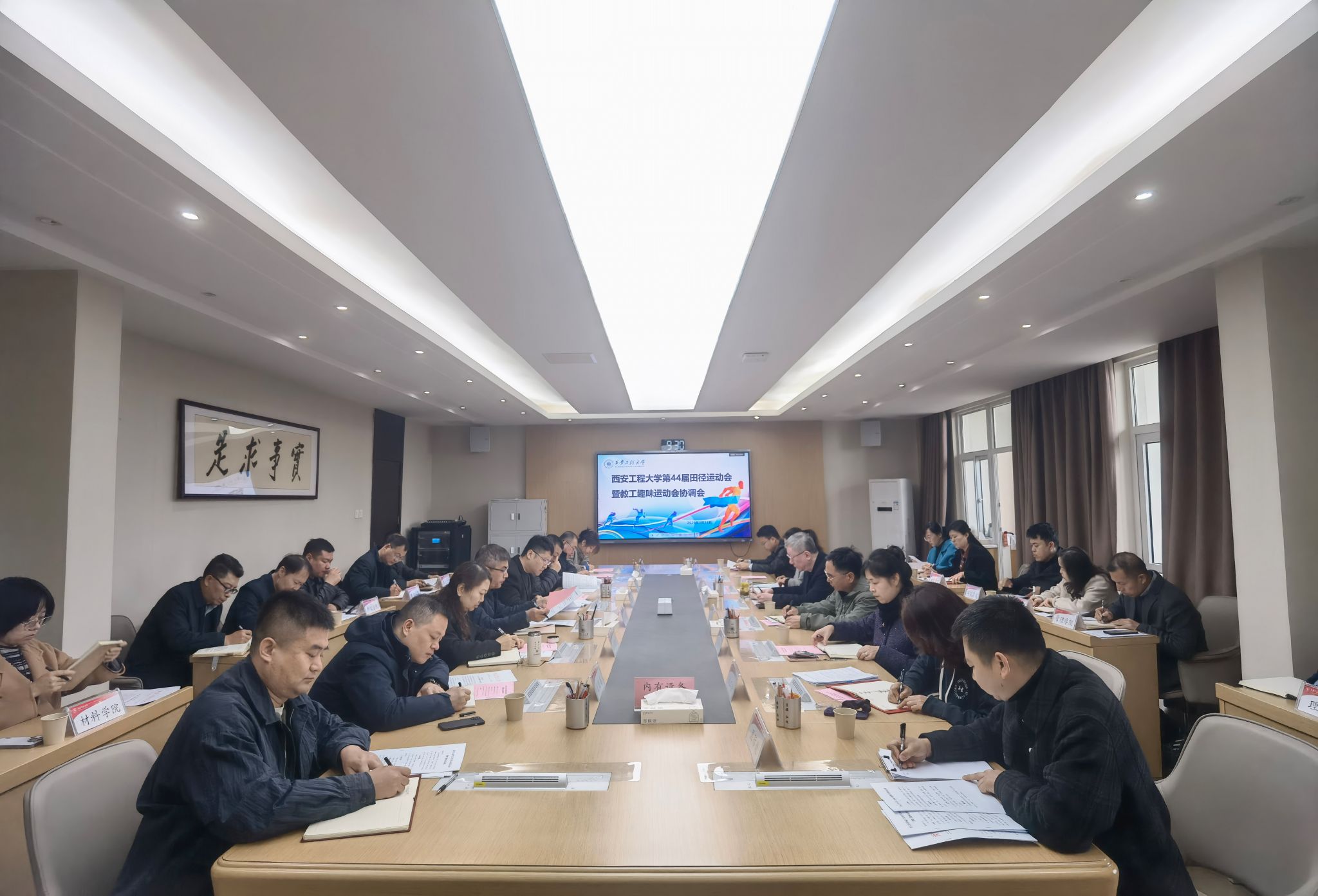 3月24日,我校第44届田径运动会暨教工趣味运动会协调会在临潼校区第三会议室组织召开。党政办、宣传部、学工部、研工部、稳定办、保卫部、校工会、校团委、教务处、研究生院、国际处、后勤管理处、校医院等部门以及各学院党委副书记参加了会议。会议由副校长戴鸿主持。
