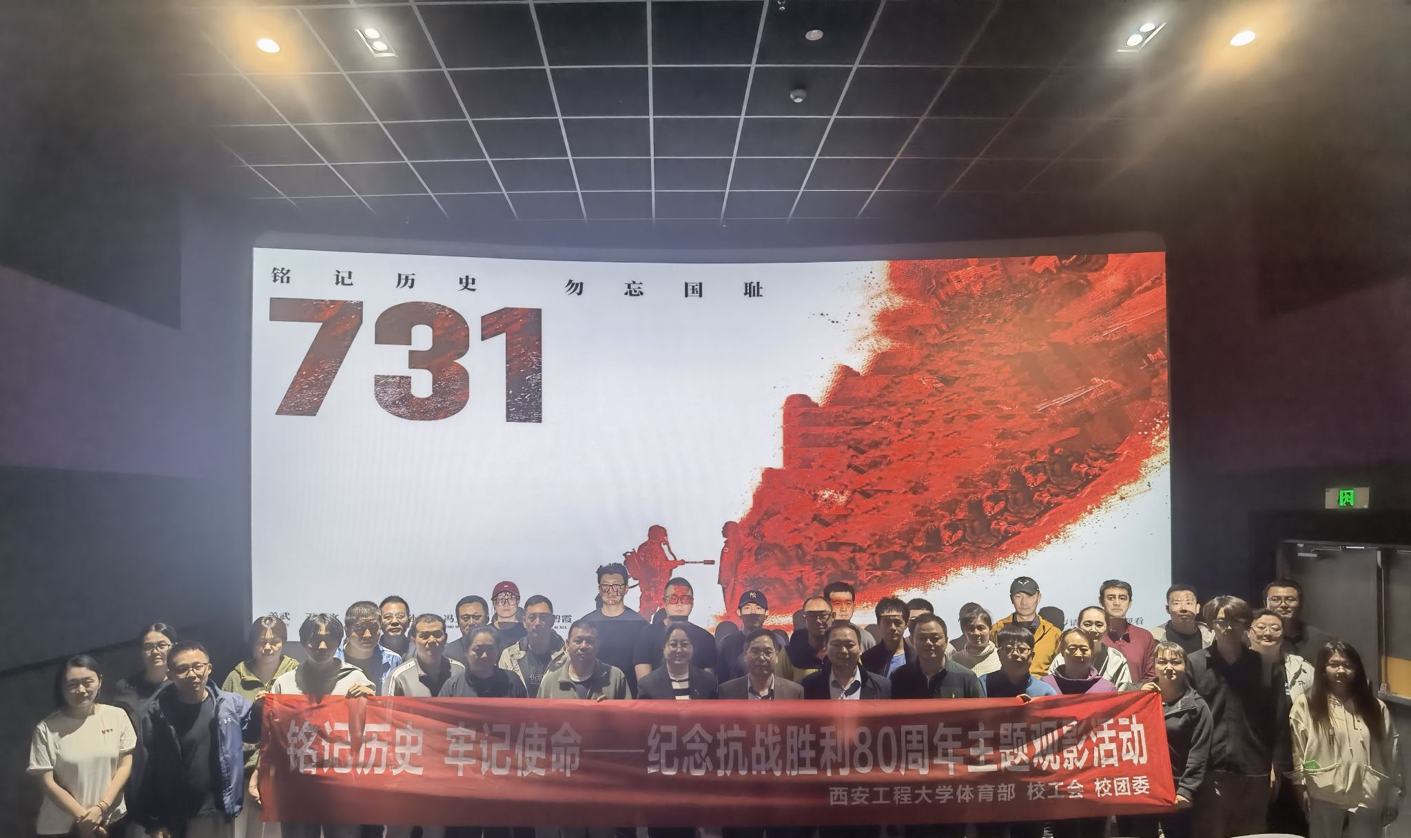 在纪念中国人民抗日战争暨世界反法西斯战争胜利80周年之际,为推进爱国主义教育,引导党员从抗战历史中汲取奋进力量、筑牢精神根基, 10月15日,体育部直属党支部与校工会、校团委联合党支部共同组织党员开展“铭记历史 牢记使命”主题观影活动,通过集中观看爱国主义影片《731》,传承红色记忆,厚植爱国情怀。