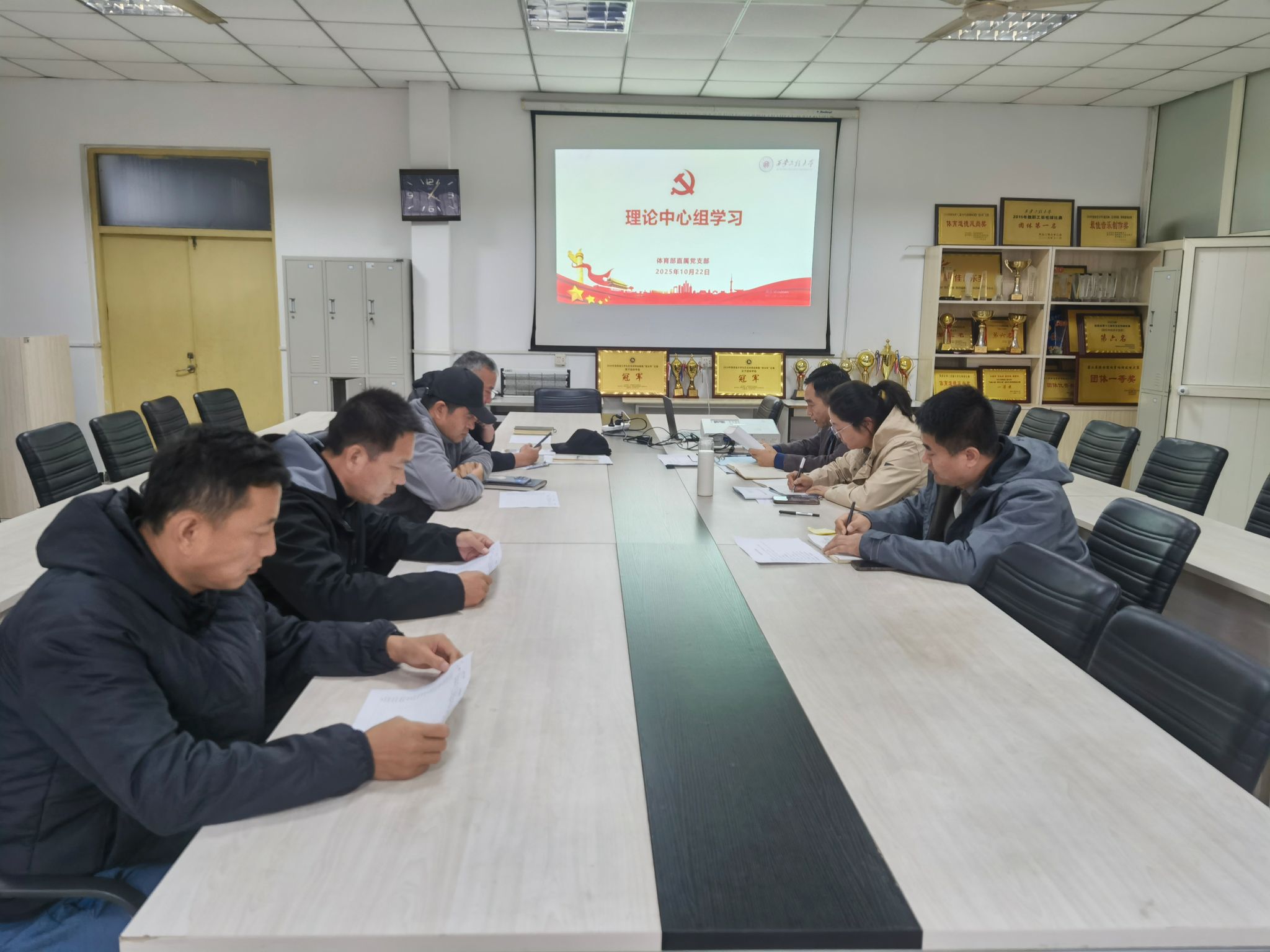 10月月23日,体育部直属党支部理论学习中心组(扩大)开展集体学习教育活动,重点学习了习近平谈治国理政第五卷第5部分中《朝着建成教育强国目标扎实买进》和陕西日报9月10日刊登《赵刚在调研高校建设工作并主持召开座谈会时强调:狠抓“双一流”建设、提升“大思政课”质效、培养更多担当民族复兴大人的时代新人》2篇文章。会议由体育部直属党支部书记张清录主持,理论学习中心组(扩大)全体成员参加了会议。